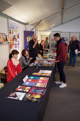 Laupäev, 5. september oli juba hoopis teistsugune päev. Rahvast oli väga palju ja tundus, et nii mõnigi pere oli otsustanud puhkepäeva koos lastega just koomiksifestivalil veeta. Eriti tihe tegevus toimus telgis, kus kirjastus Dupuis omaenda Spirou-ajakirja minifestivali korraldas.